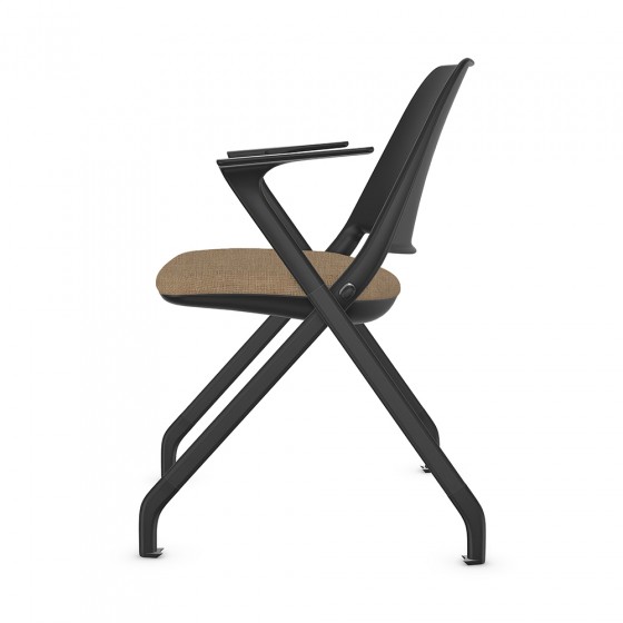 Low-back guest chair with armrests and upholstered seat.