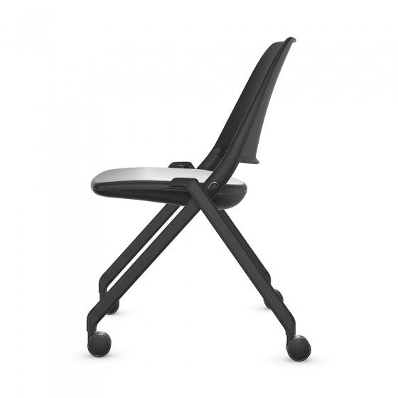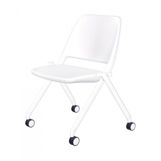 Low-back guest chair on casters.