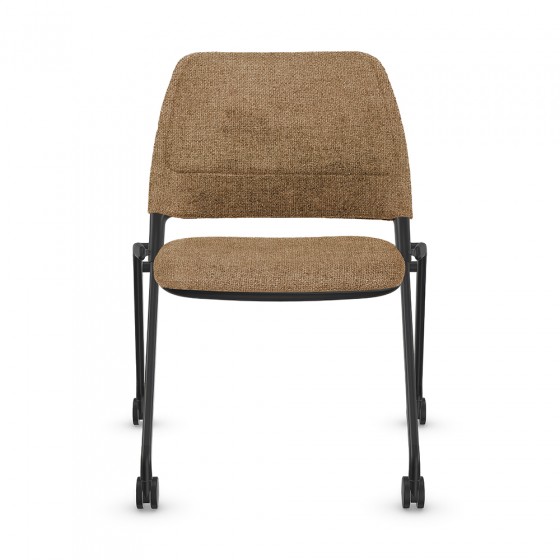 Low-back guest chair on casters with upholstered seat and backrest.