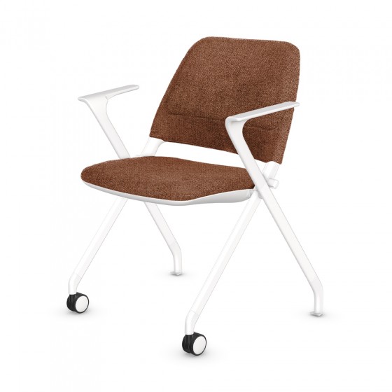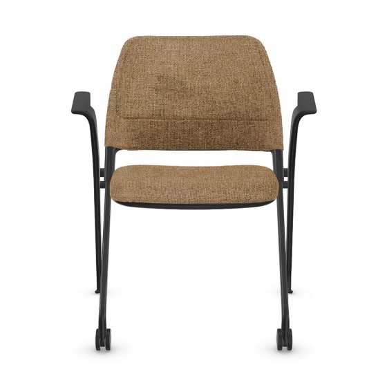 Low-back guest chair on casters and glides with armrests and upholstered seat and backrest