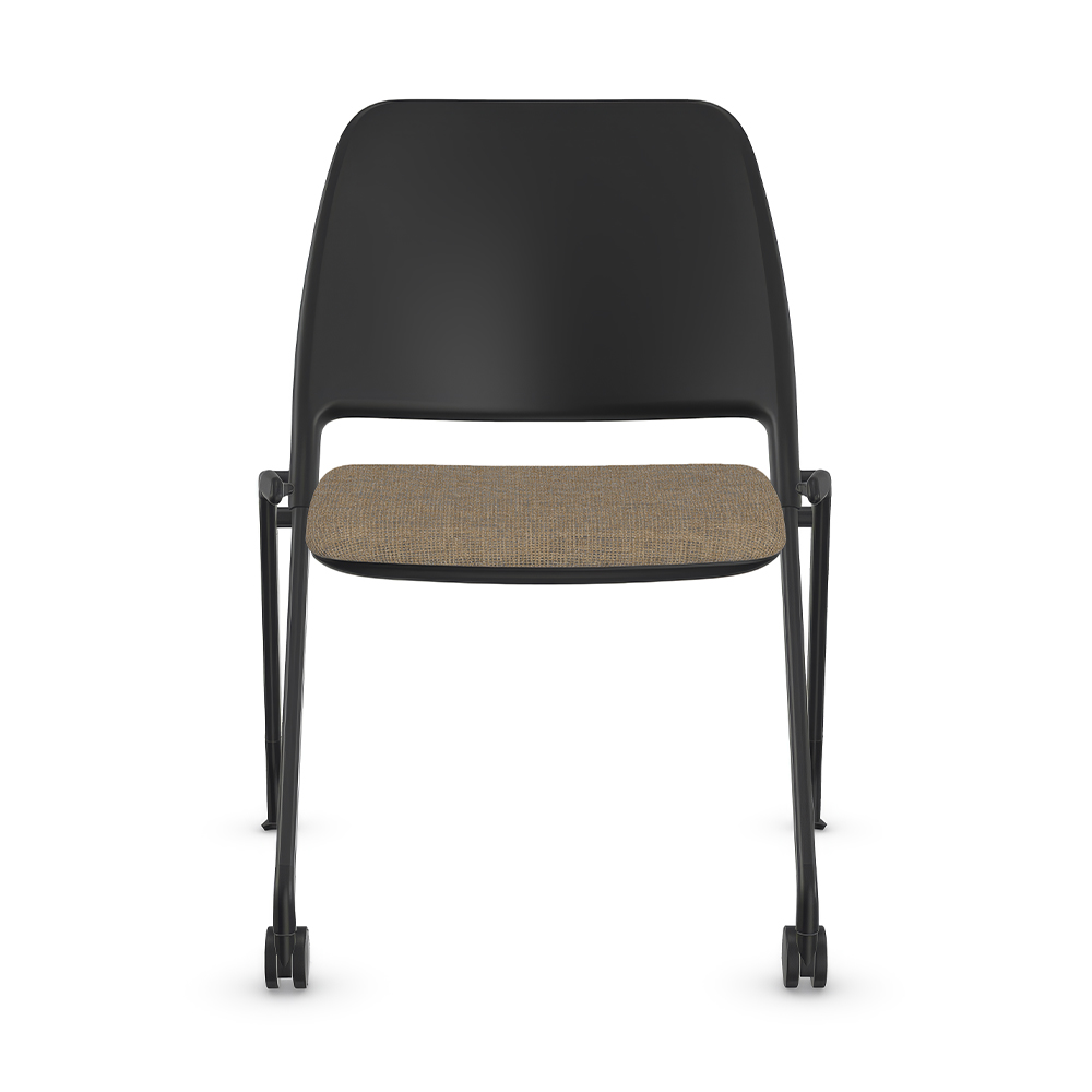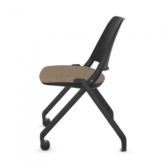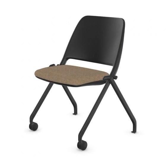 Chaise visiteur à dossier bas sur roulettes et patins, siège rembourré