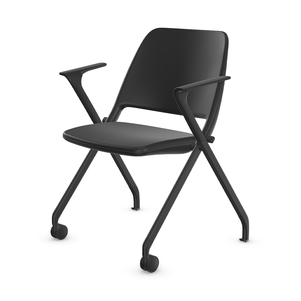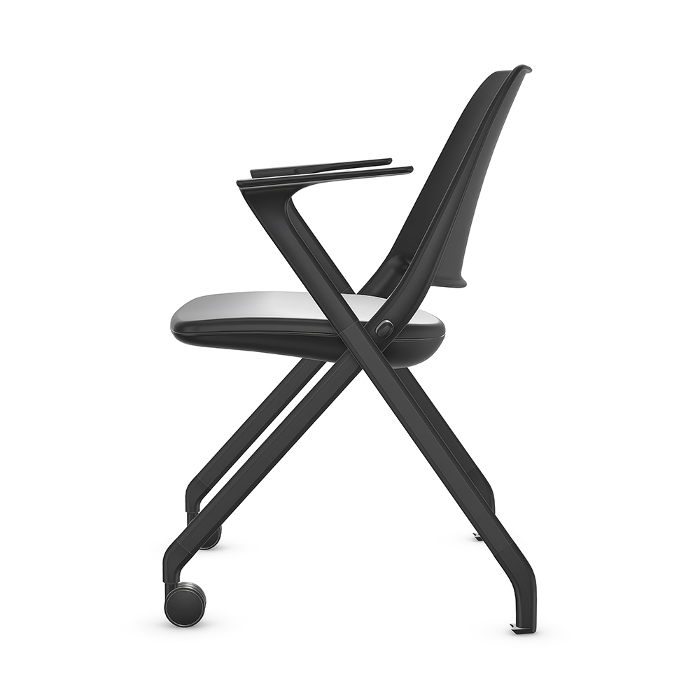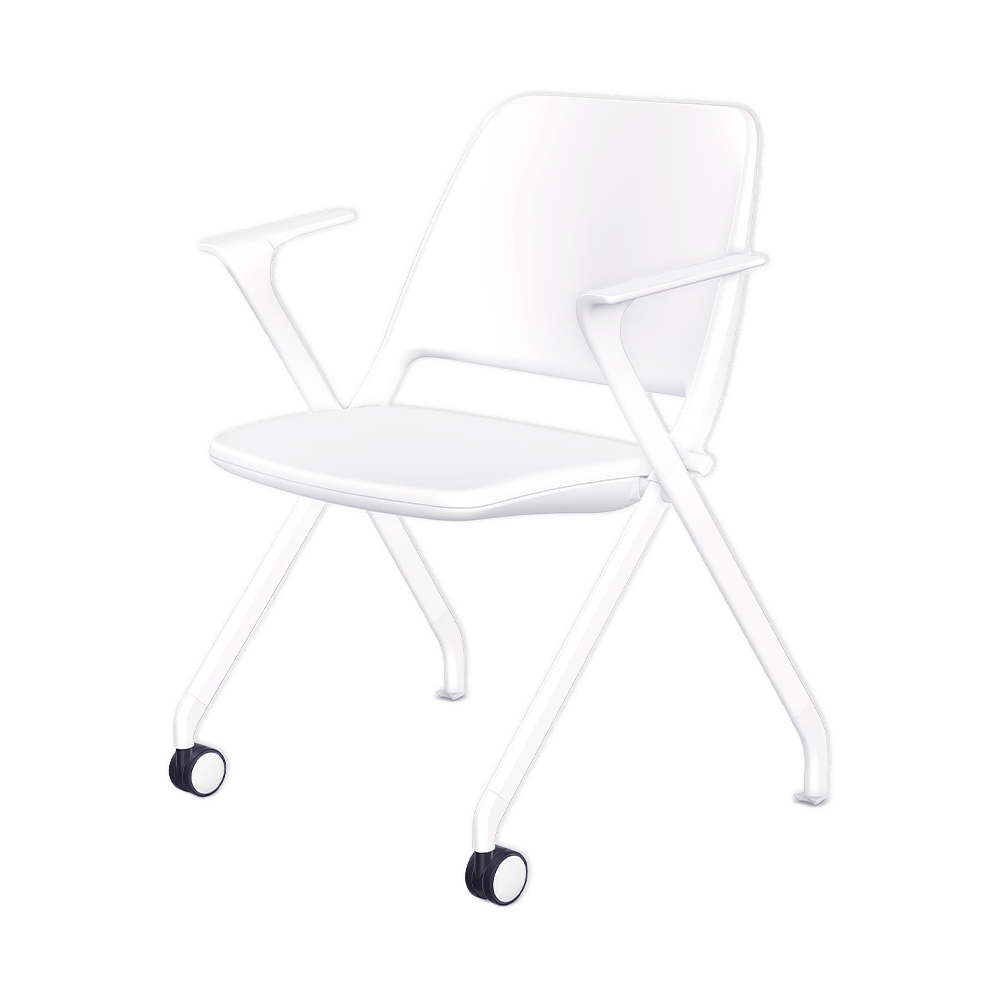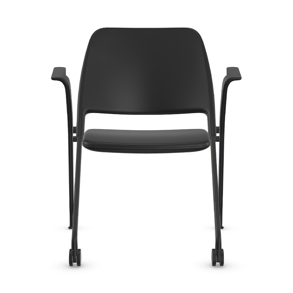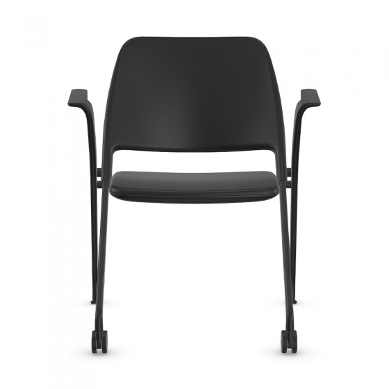Chaise visiteur à dossier bas sur roulettes et patins avec accoudoirs