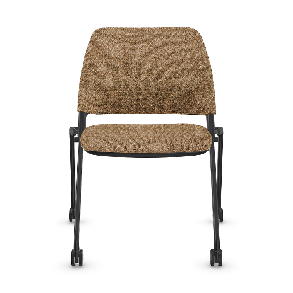 Chaise visiteur à dossier bas sur roulettes, dossier et siège rembourrés