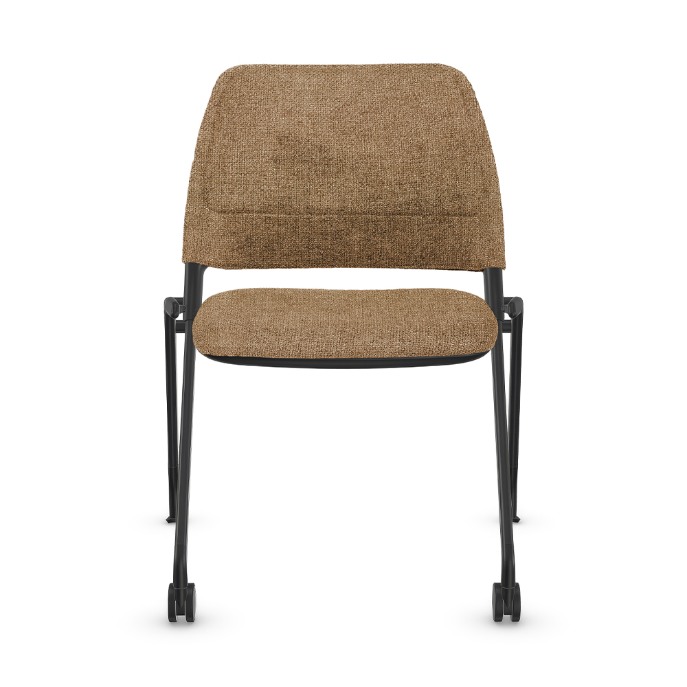 Chaise visiteur à dossier bas sur roulettes et patins, dossier et siège rembourrés